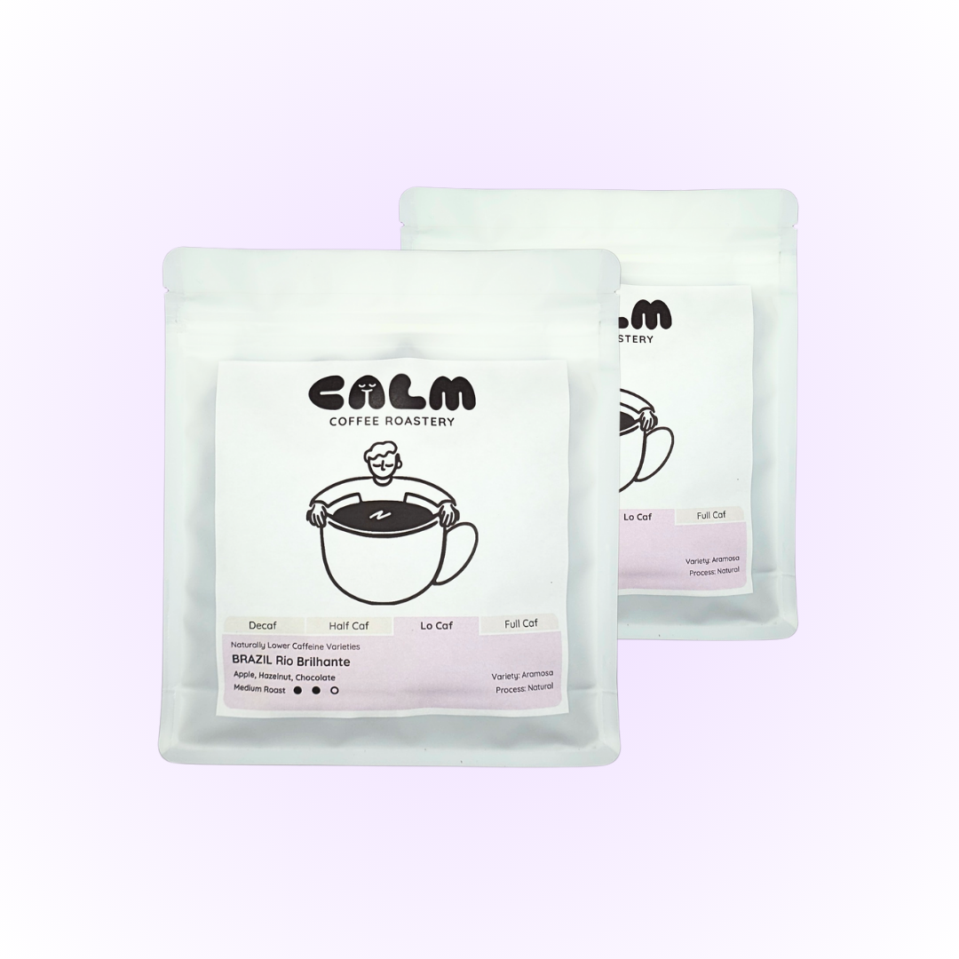 This starter pack includes two 250g bags of our LO CAF BRAZIL Rio Brilhante - a rare, naturally lower caffeine specialty coffee. Carefully sourced, lab tested for caffeine content and lovingly small batch roasted, this is a specialty coffee experience for the caffeine conscious.
